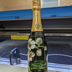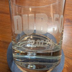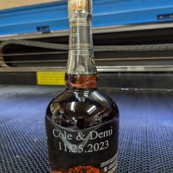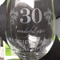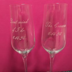 I can engrave glass items such as wine glasses, glass beer mugs, shot glasses etc. One thing I have found that doesn’t do to well is fine crystal, it seems to have some inherent stress in the glass from manufacture and sometime when the laser beam hits it will fracture. I do shy away from crystal for that reason.