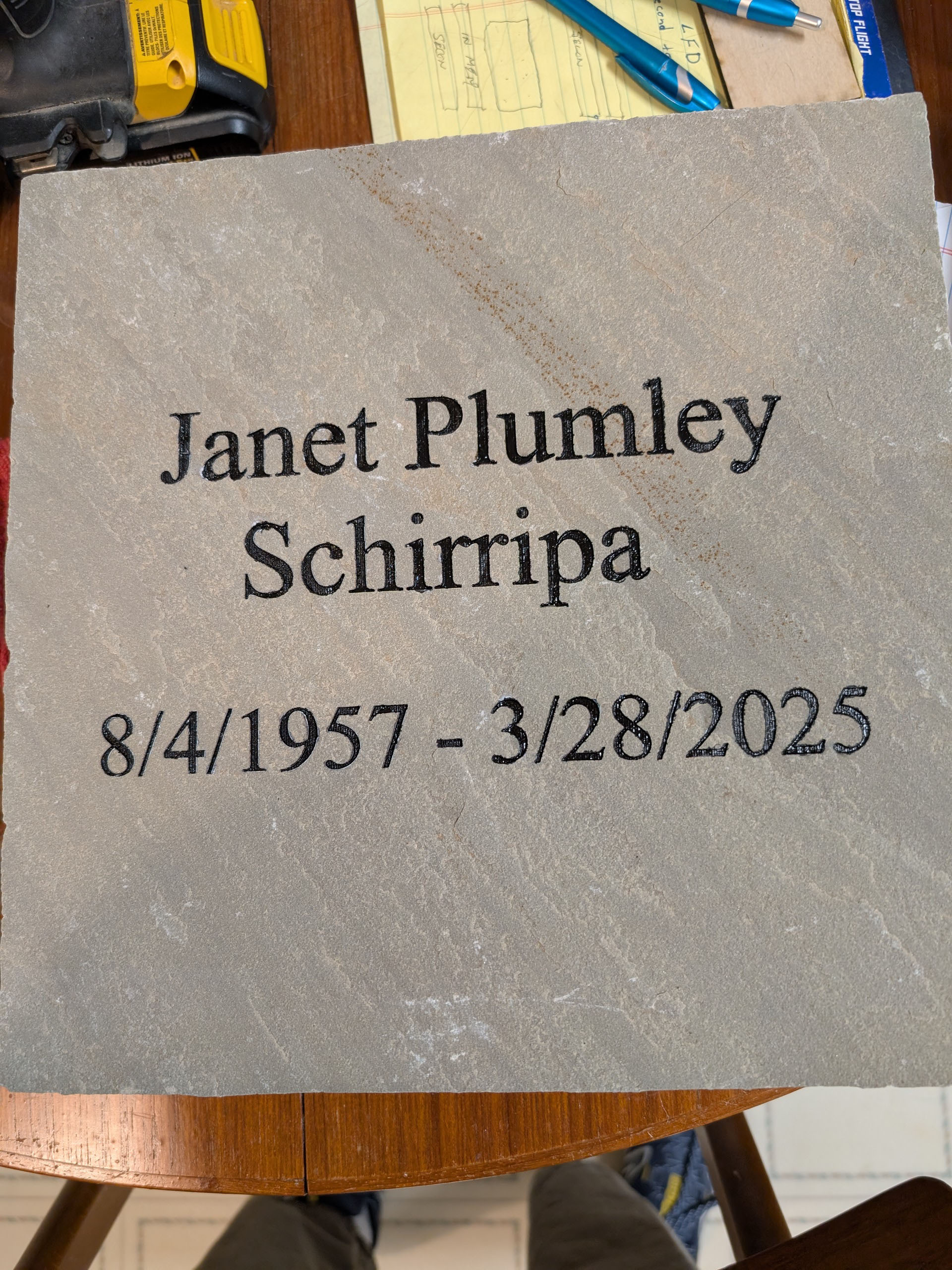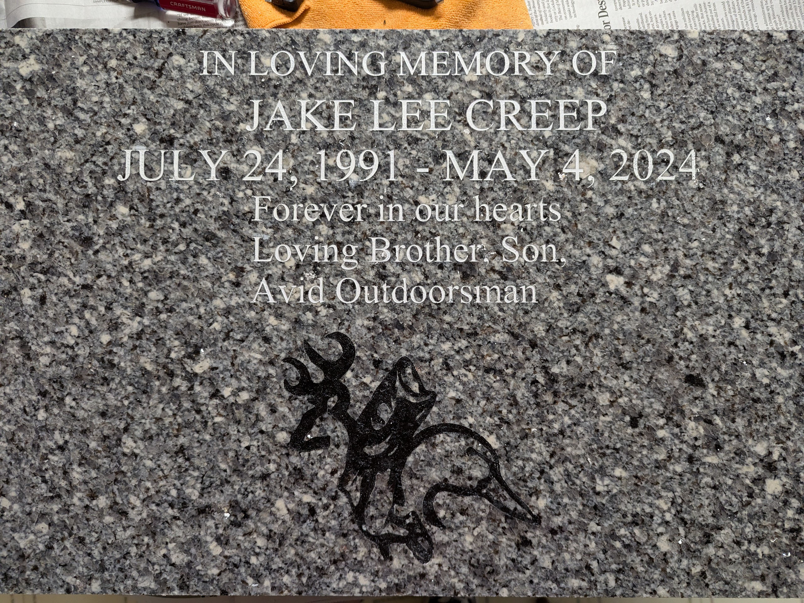 I grave a lot of granite paper weights for a company, pet headstones, urns, walkway stones and or bricks. I can also engrave marble and other stone type materials.